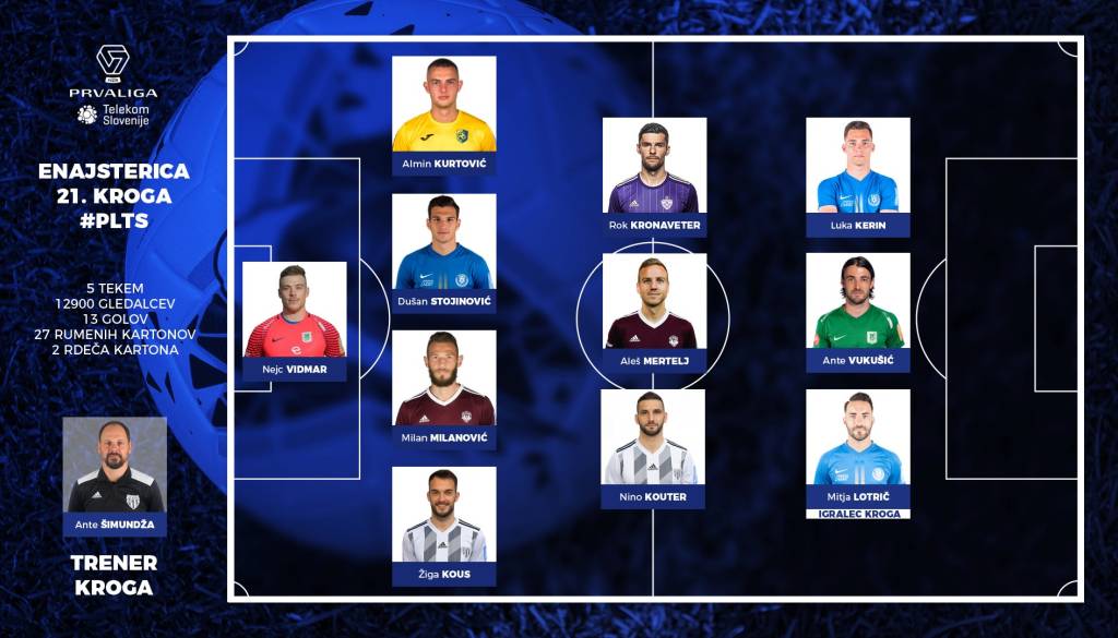 Mura je v nedeljo z 2 : 1 premagala Domžale, med idealno enajsterico kroga pa sta se tudi po zaslugi zmage uvrstila Žiga Kous in Nino Kouter. Prekmurec Mitja Lotrič, član Celja, je postal igralec kroga.