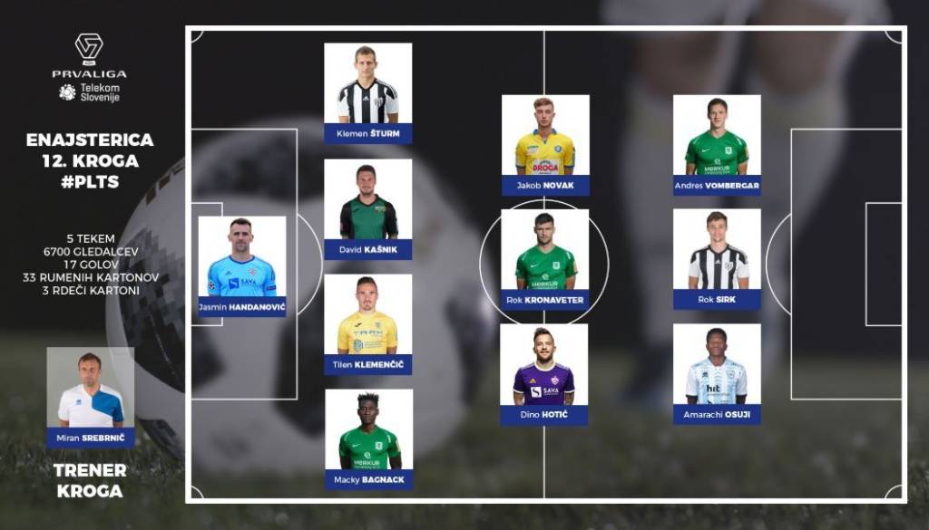Nogometaši so za vikend odigrali 12. krog v prvi slovenski nogometni ligi in v izdihljajih srečanja prišli do remija z 2 : 2. Pred vami pa je idealna enajsterica minulega kroga.