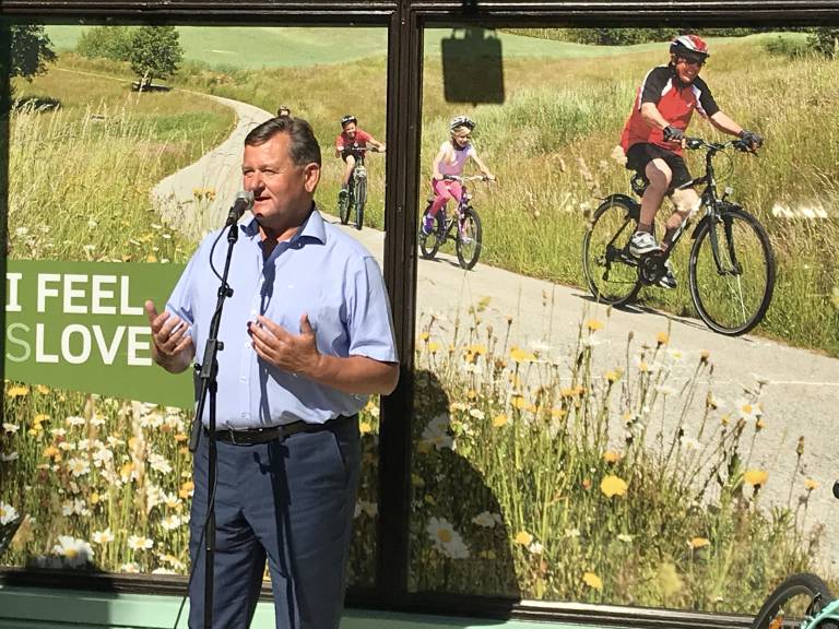 Kot je ob današnji otvoritvi dejal župan Alojz Glavač, je v njihovi občini veliko poti primernih za kolesarje.