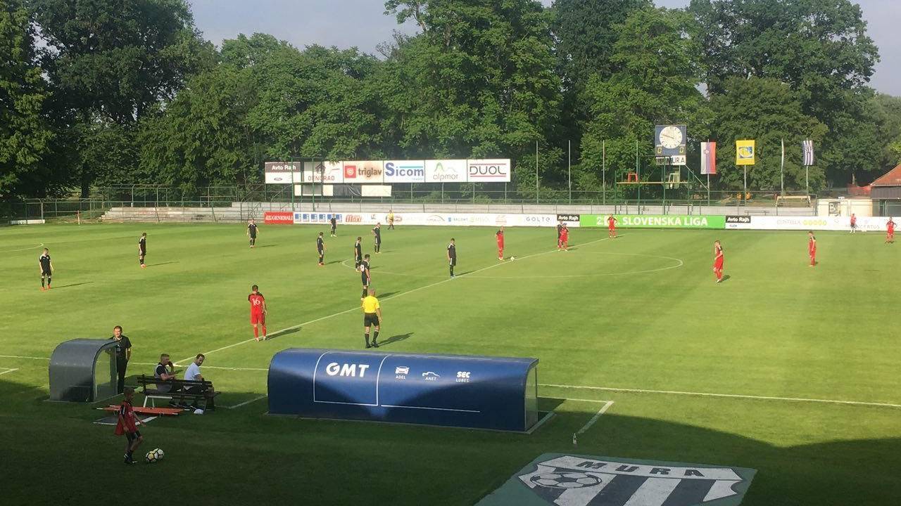 V drugi minuti srečanja je prvi zadetek za Muro dosegel Žan Karničnik - 1:0.