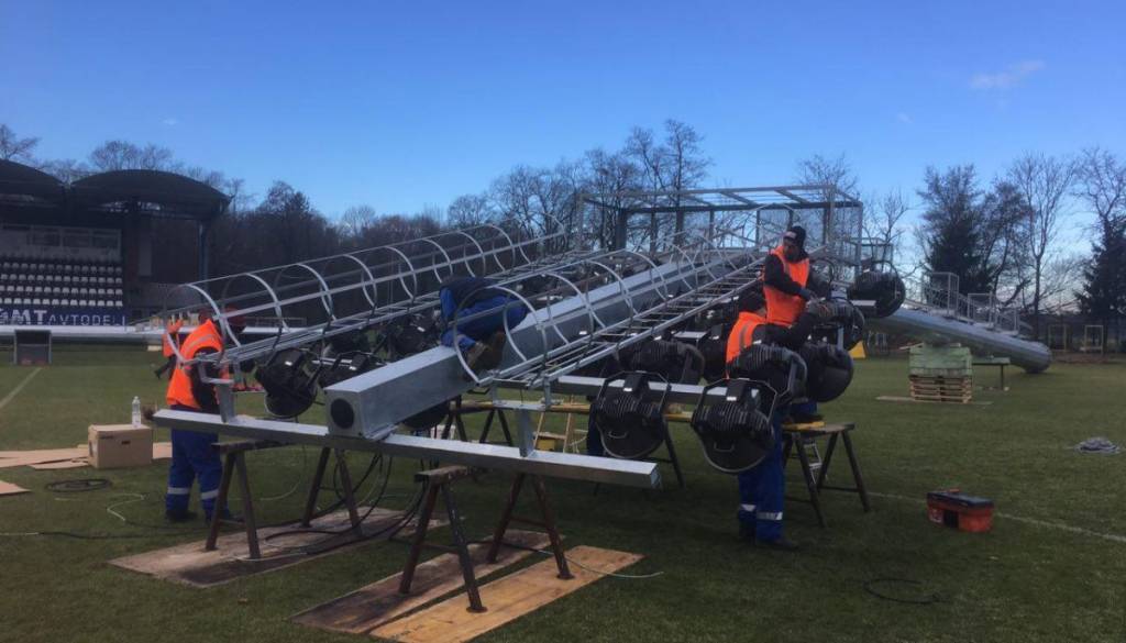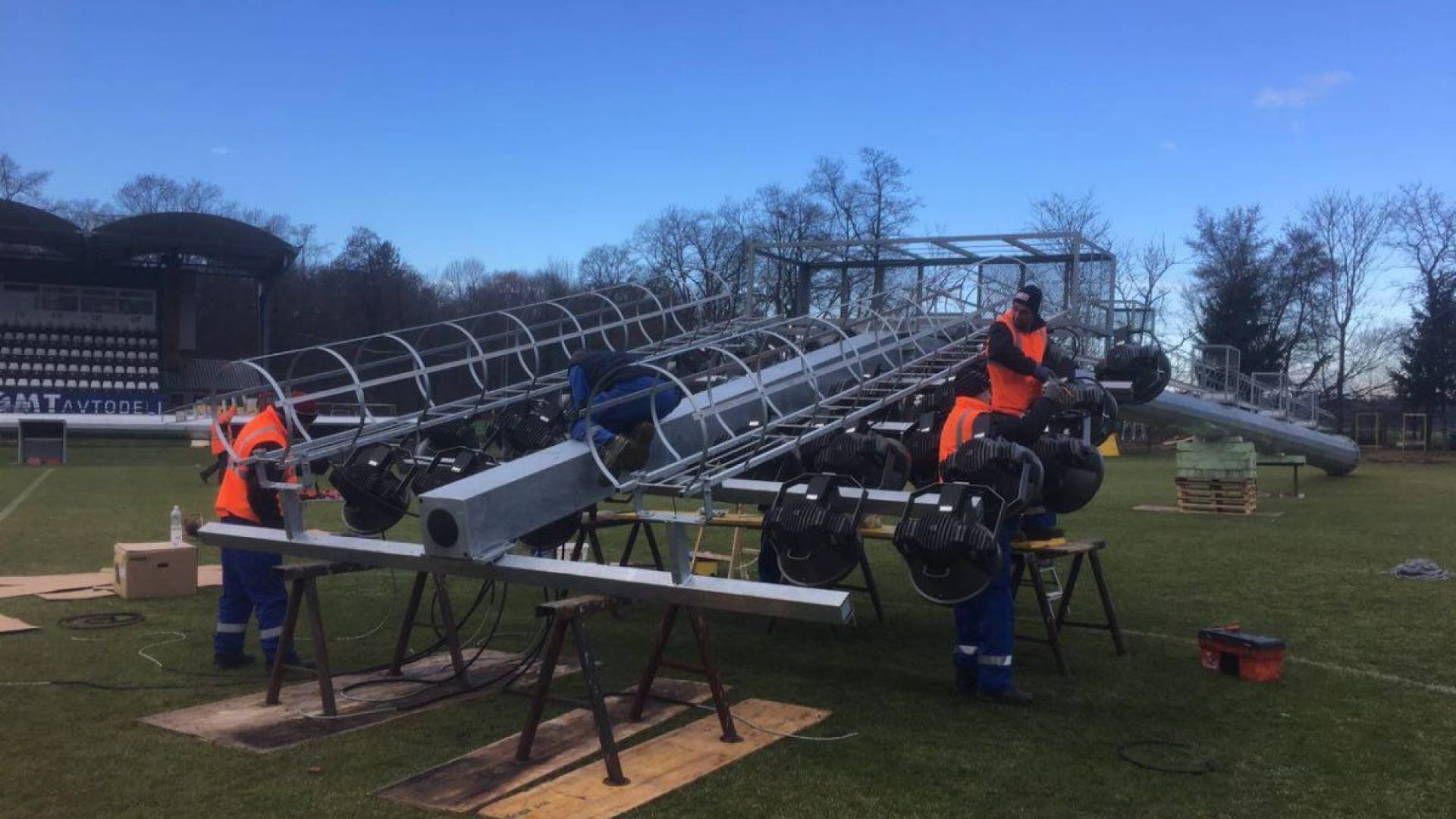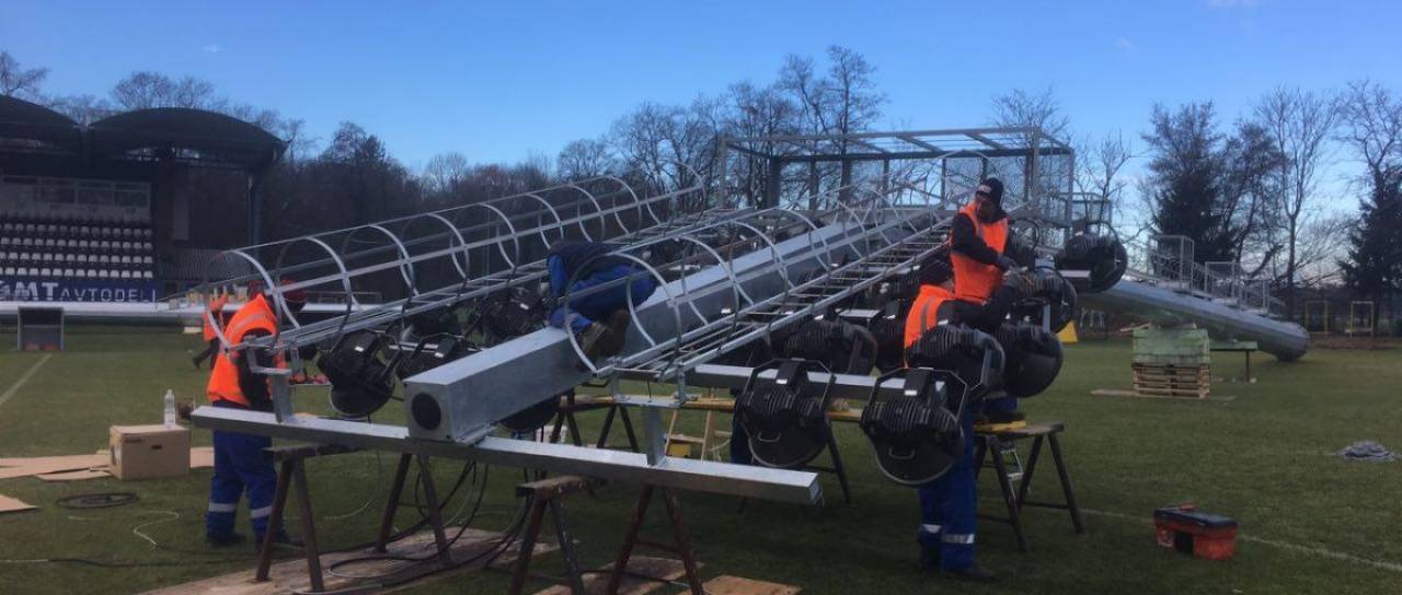 Reflektorji na Fazaneriji in tekme v večernem terminu bodo naposled postale realnost. Prvi od štirih reflektorjev na Fazaneriji že stoji.