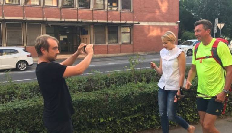 Pahorja na popotovanju spremlja njegov sin Luka in vodja kabineta, pot pa jih je ponesla tudi skozi našo prestolnico, kjer ga je delček poti spremljala naša ekipa. Kot je obljubil v pogovoru, sta se s sinom skozi Rakičan in Bratonce res podala na kotalkah in skejtu.