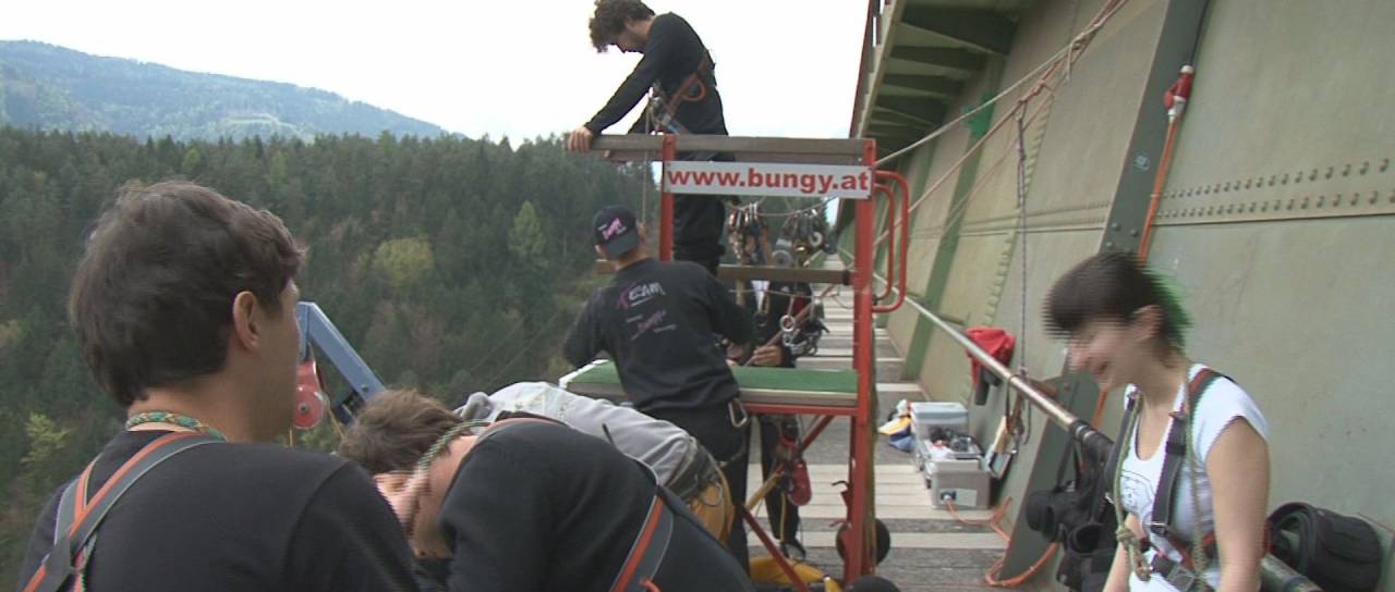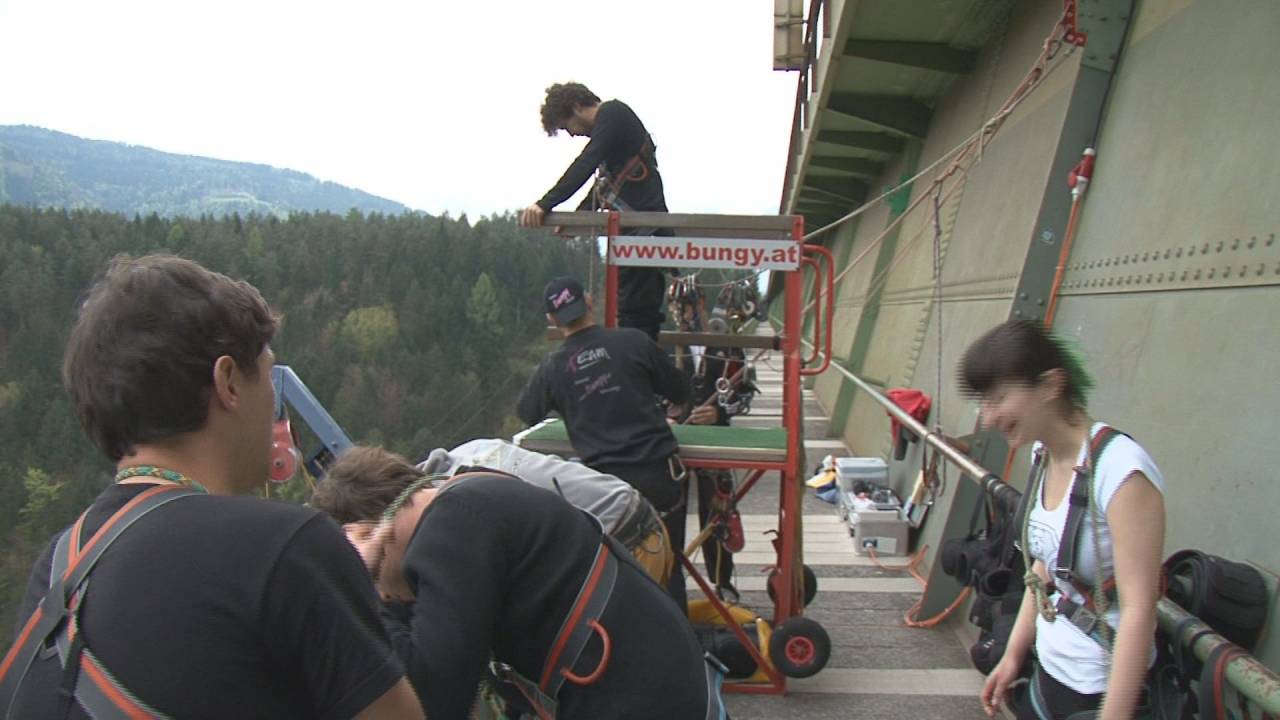 Avstrijska vasica Eis leži 20 kilometrov iz Dravograda. V tej majhni vasici stoji 96 metrski most, ki je najvišji evropski most, s katerega je mogoče skočiti bungee jumping. V nedeljo se je tam zbralo kar 70 slovenskih pogumnežev z namenom, da bi poskusili bungee skok. Vrste so bile dolge, kar kaže na to, da smo Slovenci pravi adrenalinski navdušenci.