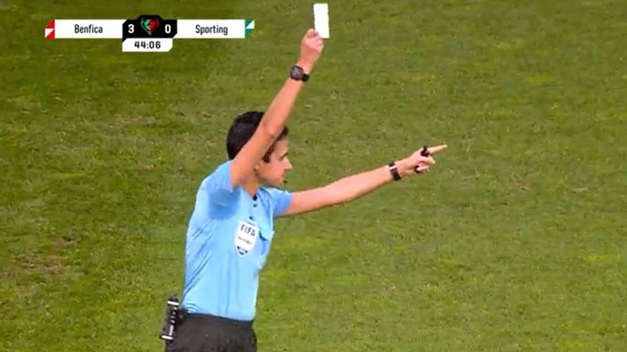 Catarina Isabel Ferreira Campos, ki je bila glavna sodnica lizbonskega derbija - s 5:0 ga je dobila Benfica -, je v 45. minuti kot prva v zgodovini svetovnega nogometa pokazala beli karton.