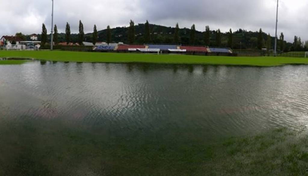 Poplavljenega je bila tretjina igrišča, vodo so sicer izčrpali, vendar pa je površina tako mehka, da ni primerna niti za pripravo terena. Teren je preprosto premehak, noga se preveč ugreza. Vprašljiva je tudi izvedba naslednje nogometne tekme v Športnem parku Lendava, ki je predvidena za petek, 19. 9. 2014, ob 15.30 uri - U17 kvalifikacije za EP Slovenija-Turčija. Usoda omenjene tekme bo znana predvidoma jutri.