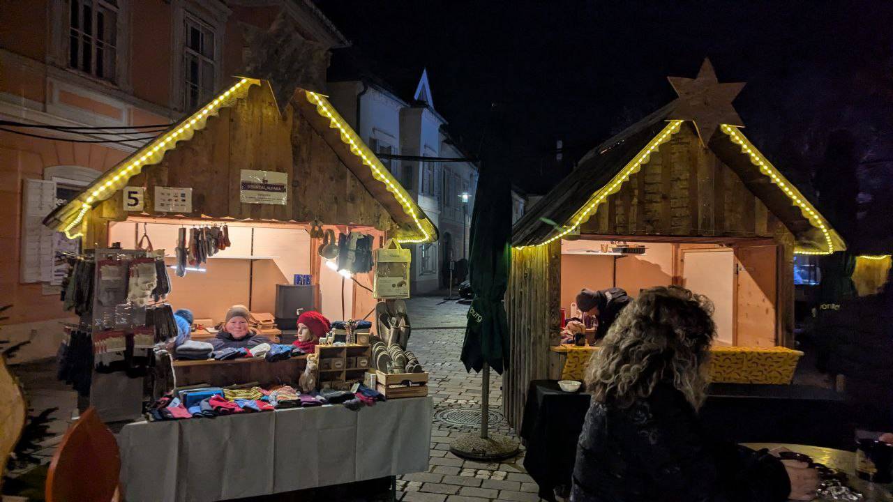 Na glavnem trgu stoji več okrašenih lesenih hišic, v katerih lokalni ponudniki obiskovalcem ponujajo vse od toplih napitkov do sladkih in slanih prigrizkov. Cene so tudi letos zmerne in primerljive z drugimi adventnimi tržnicami v regiji.