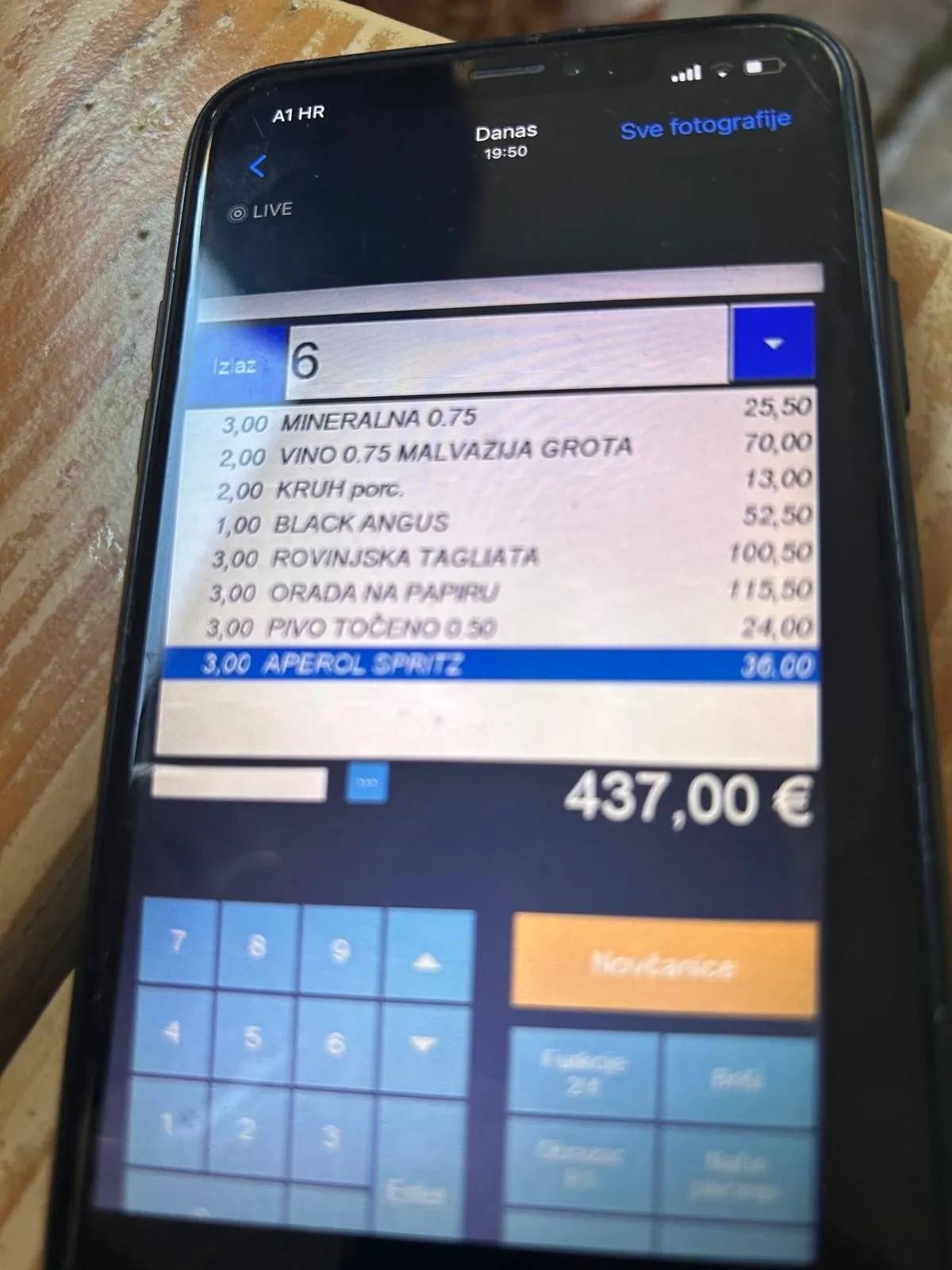 Podroben pregled računa je pokazal, da so cene za običajne jedi in pijače skokovito narasle. Košarica kruha je stala vrtoglavih 6,50 evra na osebo – cena, ki je redko videna celo v uglednih restavracijah evropskih prestolnic. Aperol Spritz, priljubljena osvežilna pijača pa stane kar 12 evrov!