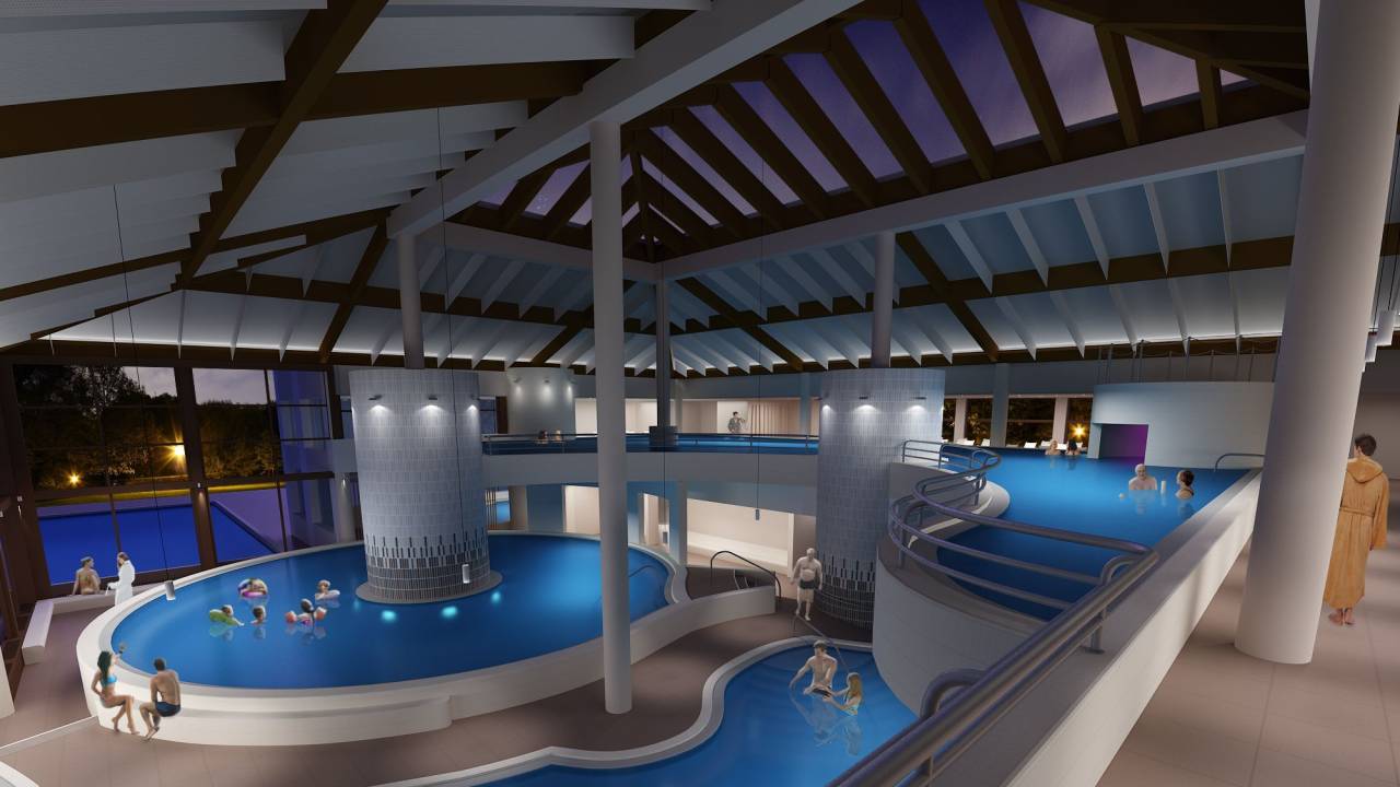 Posodobili bodo zgornji in spodnji del, ki bo ponekod vseboval les v obliki lamel, ta pa bo obdan s prodom. Ločeni spodnji del pa bo namenjen družinam, kjer bo manjši otroški bazen z igrali. Zgornji del notranjega kopališča bo kontrast spodnjemu in bo ponujal pogled na naravo. Na svoj račun bodo prišli tudi ljubitelji savne, saj jim bodo na voljo finska, turška in infrardeča savna s prekmurskimi zelišči.