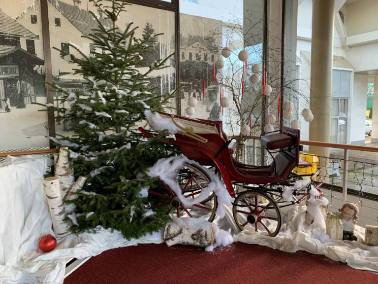 Tako seveda skrbijo tudi za pristno praznično vzdušje in občutek domačnosti. V avli, tik ob recepciji so na primer postavili veliko božično drevo, še pred vstopom v hotel pa goste pozdravi tudi praznično okrašena kočija.