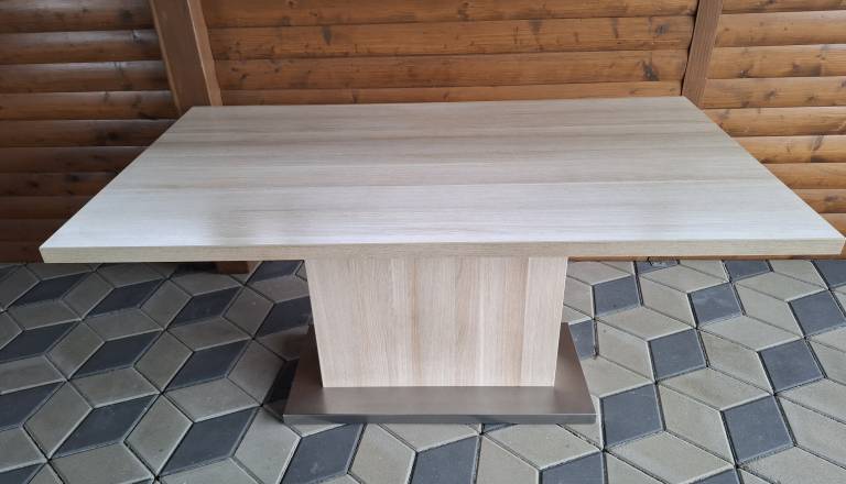 Oglas je potekelZelo ugodno prodam hrast jedilno mizo 160x90x78x3,8 zelo stabilno , z inox zelo močnim podnožjem, zelo lepo ohranjeno. Pokliči ne bo ti žal.