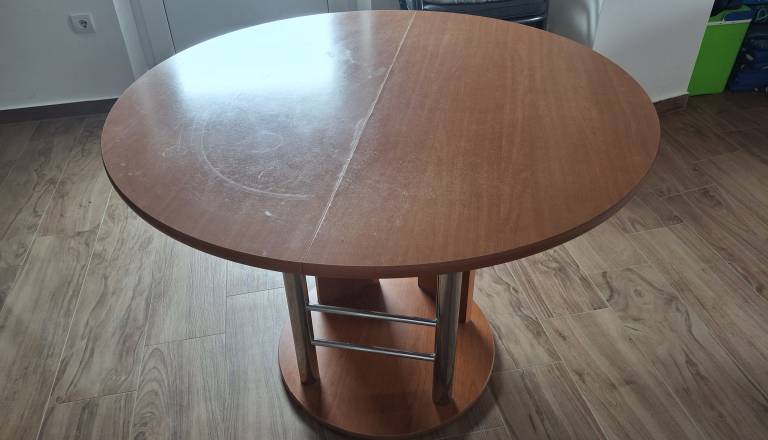 Po dogovoruKuhinjska miza ,okrogla ! Izvleče se v ovalno. 4x kuhinjski stol,z prevlekami.