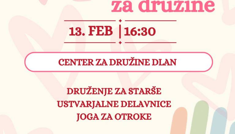 Valentinova čajanka za družine Vabljeni na čarobno družinsko druženje, kjer bomo ob toplem čaju ustvarjali srčkaste izdelke, se igrali, smejali in skupaj ...
