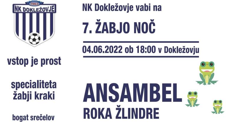 NK DOKLEŽOVJE VAS VABI NA ŽABJO NOČ 2015, KI BO 30.5.2015 ZA VAŠKO GASILSKIM DOMOM V DOKLEŽOVJU OB 19:00. ZABAVAL VAS BO ANSAMBEL SAŠA AVSENIKA TER HUMORIST ...