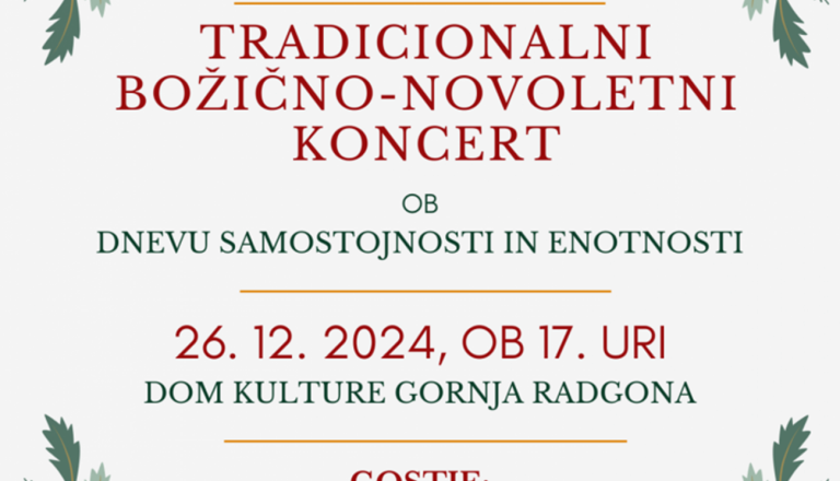 Prijazno vabljeni na Božično-novoletni koncert ob dnevu samostojnosti in enotnosti Pihalnega orkestra Gornja Radgona z gosti, ansambel Mladih 5 po srcu. Dom ...