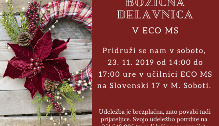 V soboto, 23. 11. od 14:00 do 17:00 vabljeni na božično delavnico, kjer bomo ustvarjali adventne venčke. Uporabljali bomo naravne in druge materiale. Delavnica ...