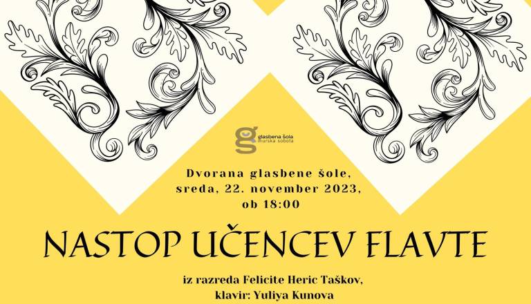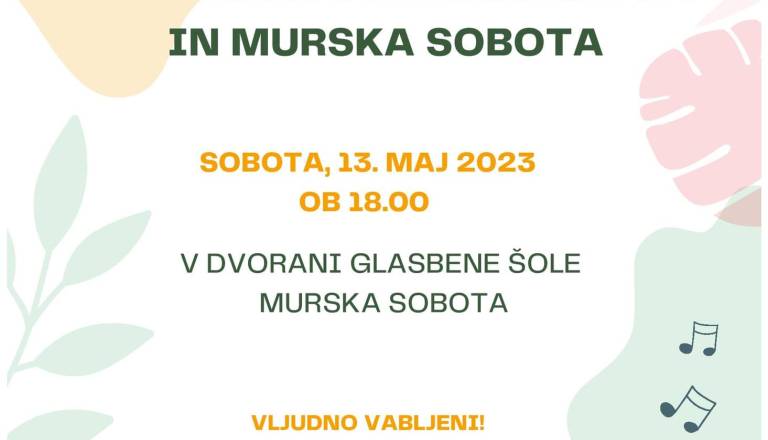 Vljudno vabljeni na skupni koncert godalcev glasbenih šol Murska Sobota in Risto Savin Žalec, ki bo v torek, 24. 1. 2023 ob 16.30 v dvorani Glasbene šole Murska ...