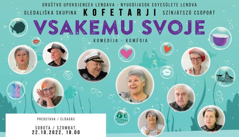 sobota, 22. oktober 2022 | gledališka predstava 18.00 Vstopnina: 5 € Prizorišče: Gledališka in koncertna dvorana Lendava Organizator: Društvo upokojencev ...