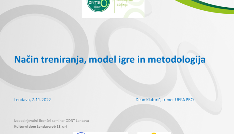 Ponedeljek, 7. november 2022, ob 18.00 Izpopolnjevalni licenčni seminar ODNT Lendava Predavatelj: Dean Klafurić, trener UEFA PRO Prizorišče: Gledališka in ...