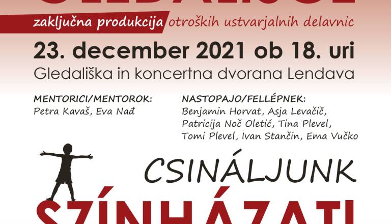 Četrtek, 23. december 2021 | prireditev 18.00 GREMO SE GLEDALIŠČE: Zaključna produkcija otroških ustvarjalnih delavnic* Prizorišče: Gledališka in koncertna ...