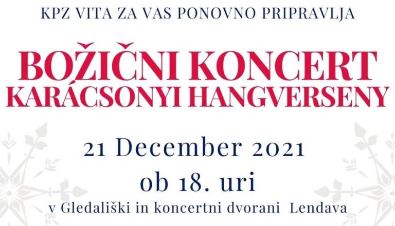 KPZ VITA: Božično – novoletni koncert Vstop prost VSTOP NA DOGODEK JE POGOJEN S PCT!