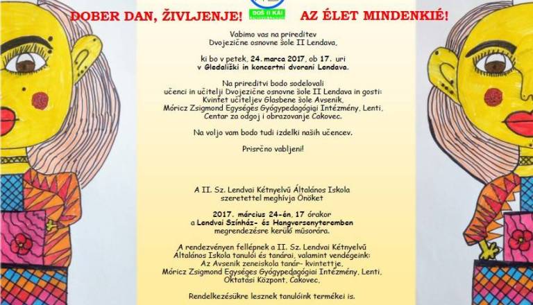 Dvojezična osnovna šola II Lendava/II. Sz. Lendvai Kétnyelvű Általános Iskola v petek, 24. marca 2017, ob 17. uri v Gledališki in koncertni dvorani v Lendavi ...