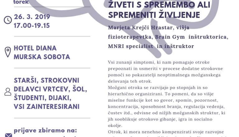 O predavanju: Vsi zunanji simptomi, ki nam pomagajo otroke prepoznati in usmeriti v procese dodatne strokovne pomoči so pokazatelji neoptimalnega možganskega ...