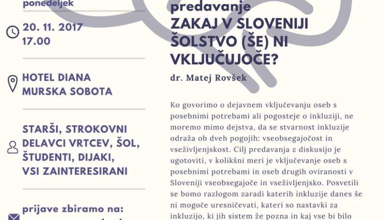 O predavatelju: Predavatelj dr. Matej Rovšek, ravnatelj Centra Janeza Levca v Ljubljani, se že vrsto let posveča inkluziji oseb z motnjo v duševnem razvoju. S ...