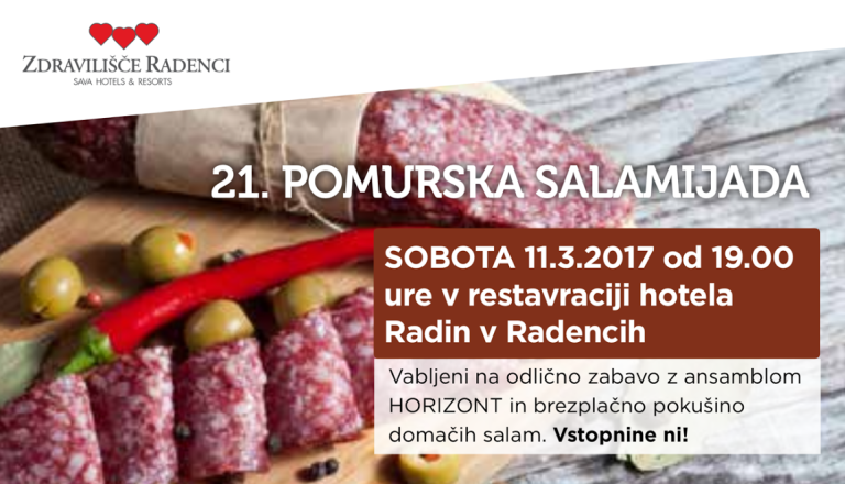sobota 10. marec 2018 ob 19. uri začetek zaključne prireditve 22. POMURSKE SALAMIADE s podelitvijo priznanj v restavraciji hotela Radin v Radencih,in pokušnja ...