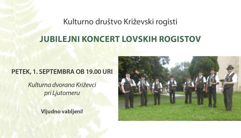 Kulturno društvo Križevski rogisti v petek, 1. septembra, ob 19. uri v Kulturni dvorani Križevci pri Ljutomeru pripravlja Jubilejni koncert lovskih rogistov ...