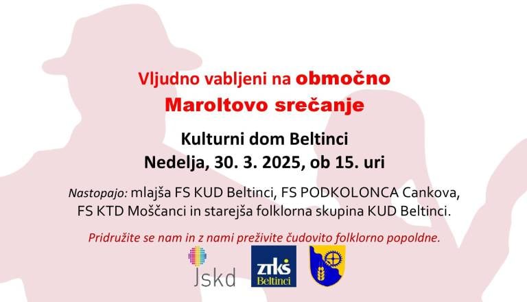 Nastopajo: mlajša FS KUD Beltinci, FS PODKOLONCA Cankova, FS KTD Moščanci in starejša folklorna skupina KUD Beltinci. Pridružite se nam in z nami preživite ...
