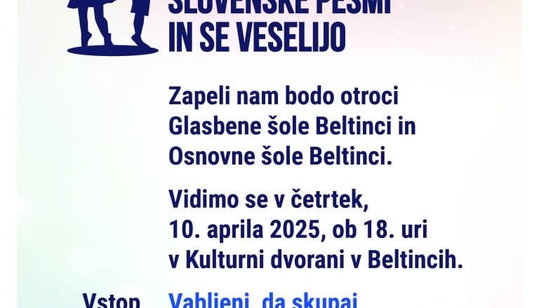 OTROCI POJEJO SLOVENSKE PESMI IN SE VESELIJO Četrtek, 10. april 2025 ob 18.00 KULTURNI DOM BELTINCI