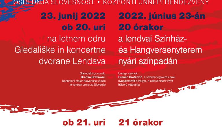 Osrednja slovesnost v občini Lendava Dan državnosti 2022 Balet pod zvezdami (v izvedbi Društva baletnih umetnikov Slovenije) Slavnostni govornik: Branko ...
