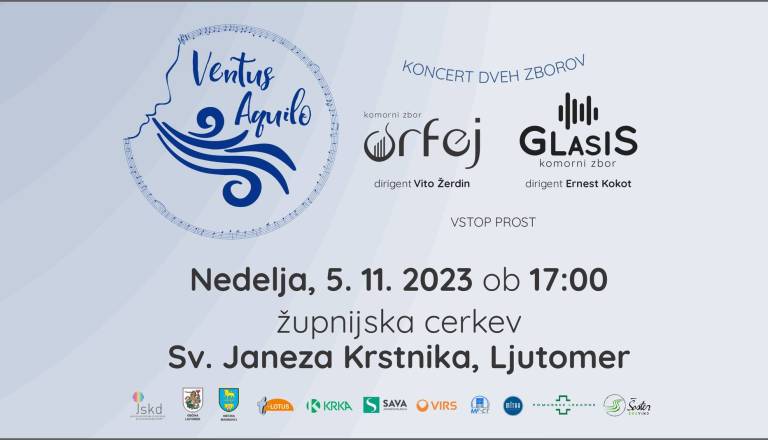 Vabljeni, da nedeljsko popoldne preživite v družbi Komornega zbora Glasis in Komornega zbora Orfej na koncertu "Ventus Aquilo". Koncert bo v cerkvi Sv. Janeza ...