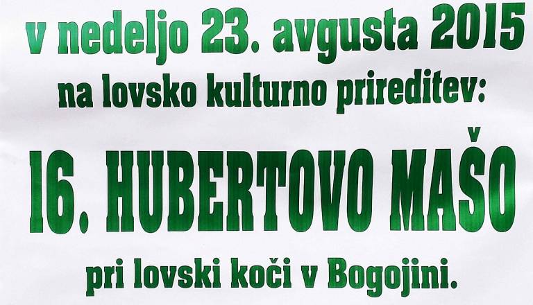 Letos že osemnajsto leto zapored pripravljamo tradicionalno Hubertovo mašo. Ta bo pri lovski koči v Bogojini, v nedeljo, 20.8.2017, ob 11:30. Po sv. maši sledi ...