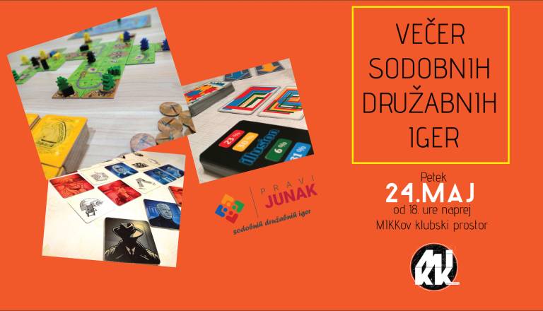 MIKK Murska Sobota in Pravi Junak - sodobnih družabnih iger Petek, 24. maj 2019 od 18. ure naprej MIKKov klubski prostor ?Večer sodobnih družabnih iger? V petek ...