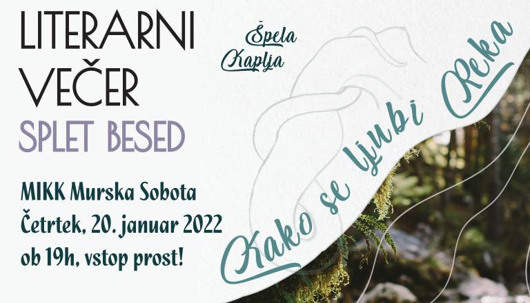 MIKK Murska Sobota Četrtek, 20. januar 2022 ob 19h MIKK-ov klubski prostor Vstop prost Literarni večer Splet besed: Špela Kaplja Na literarnem večeru Splet ...