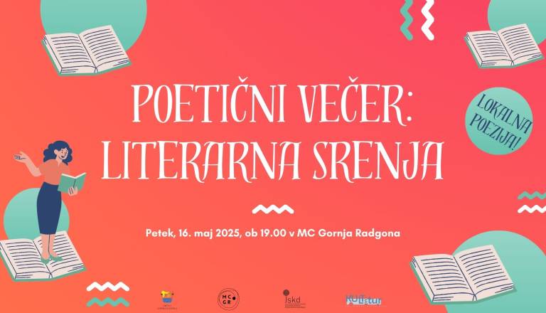 𝗣𝗼𝗲𝘁𝗶𝗰̌𝗻𝗶 𝘃𝗲𝗰̌𝗲𝗿: 𝗟𝗶𝘁𝗲𝗿𝗮𝗿𝗻𝗮 𝘀𝗿𝗲𝗻𝗷𝗮 Petek, 16. 5. 2025, ob 19.00 Mladinski center Gornja Radgona Poezija je vsepovsod – nastaja v vseh časih in prostorih. Kako ...