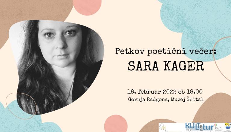 Sara Kager, mlada fotografijnja in pesnica iz Radenec, bo 18. 2. 2022 ob 18.00 gostja Petkovega poetičnega večera v Muzeju Špital. Govorila bo o pesniškem ...