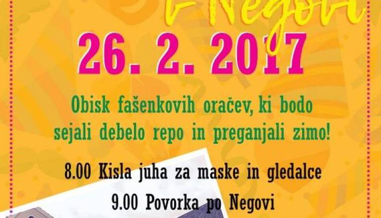 Vabljeni na Fašenk v Negovo, ki ga organizira TD Negova-Sp. Ivanjci v nedeljo, 26. februarja 2017. Fašenkovi orači bodo po Negovi sejali debelo repo in z ...