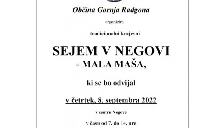 Prijazno vabljeni na tradicionalno sejemsko prireditev Mala maša v Negovi, ki tudi letos poteka ob krajevnem prazniku 8. septembra. V središču Negove bo od 7 ...