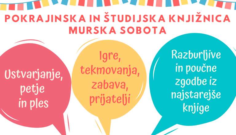 Pridružite se nam v Pokrajinski in študijski knjižnici Murska Sobota vsak ponedeljek od 16.00 do 17.00 in prisluhnite zanimivi zgodbi, ustvarjajte, plešite ...