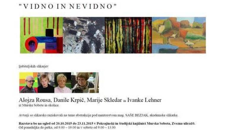 Vabimo vas na ogled razstave z naslovom " V I D N O I N N E V I D N O " ljubiteljskih slikarjev Alojza Rousa, Danile Krpič, Marije Skledar in Ivanke Lehner iz ...