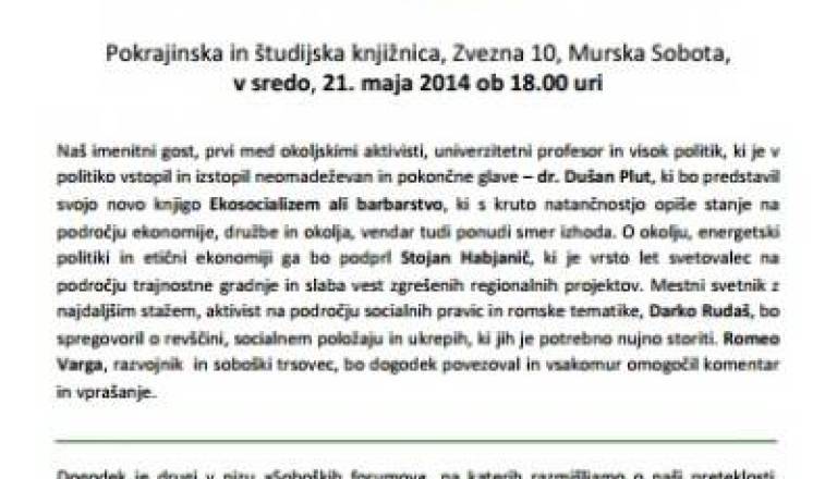 SOBOŠKI TRS IN ZDRUŽENA LEVICA VABITA NA RAZBURLJIV POGOVOR IN PREDSTAVITEV KNJIGE EKOSOCIALIZEM ALI BARBARSTVO Pokrajinska in študijska knjižnica, Zvezna 10 ...