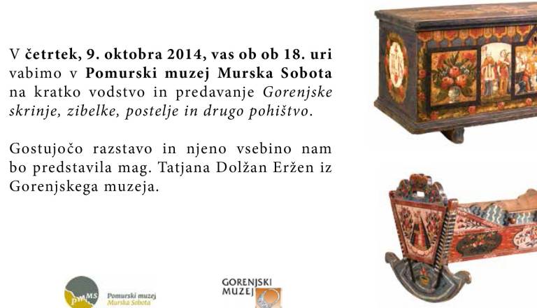 Predavanje v Pomurskem muzeju Murska Sobota: Gorenjske skrinje, zibelke, postelje in drugo pohištvo. Več v priloženem vabilu. Vabljeni!