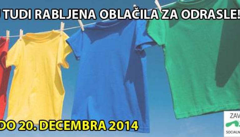 Med ponedeljkom, 15.decembra in soboto, 20.decembra, lahko pri nas kupite ali prodate tudi rabljena oblačila za odrasle. Prodajte oziroma kupite rabljena ...