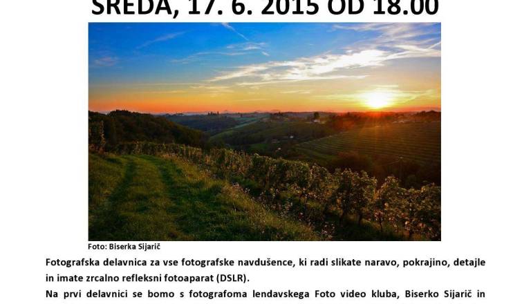Fotografska delavnica za vse fotografske navdušence, ki radi slikate naravo, pokrajino, detajle in imate zrcalno refleksni fotoaparat (DSLR). Na prvi delavnici ...