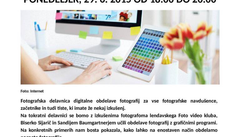 Fotografska delavnica digitalne obdelave fotografij za vse fotografske navdušence, začetnike in tudi tiste, ki imate že nekaj izkušenj. Na tokratni delavnici se ...