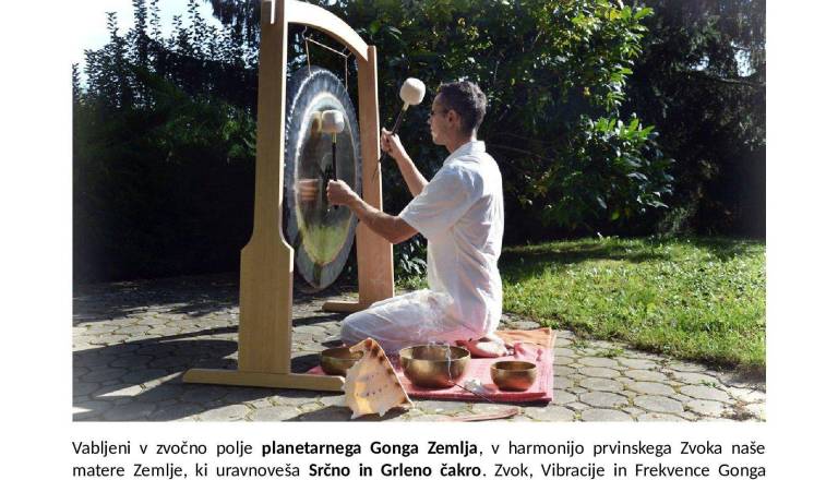 Vabljeni v zvočno polje planetarnega Gonga Zemlja, v harmonijo prvinskega Zvoka naše matere Zemlje, ki uravnoveša Srčno in Grleno čakro. Zvok, Vibracije in ...