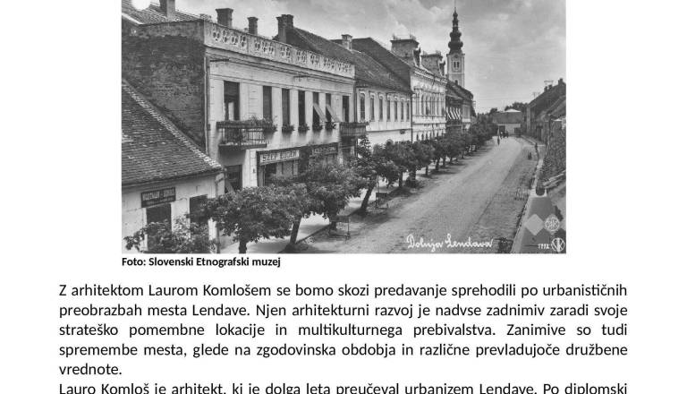 Z arhitektom Laurom Komlošem se bomo skozi predavanje sprehodili po urbanističnih preobrazbah mesta Lendave. Njen arhitekturni razvoj je nadvse zadnimiv zaradi ...
