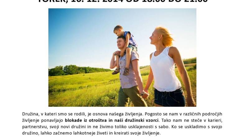 Družina, v kateri smo se rodili, je osnova našega življenja. Pogosto se nam v različnih področjih življenje ponavljajo blokade iz otroštva in naši družinski ...